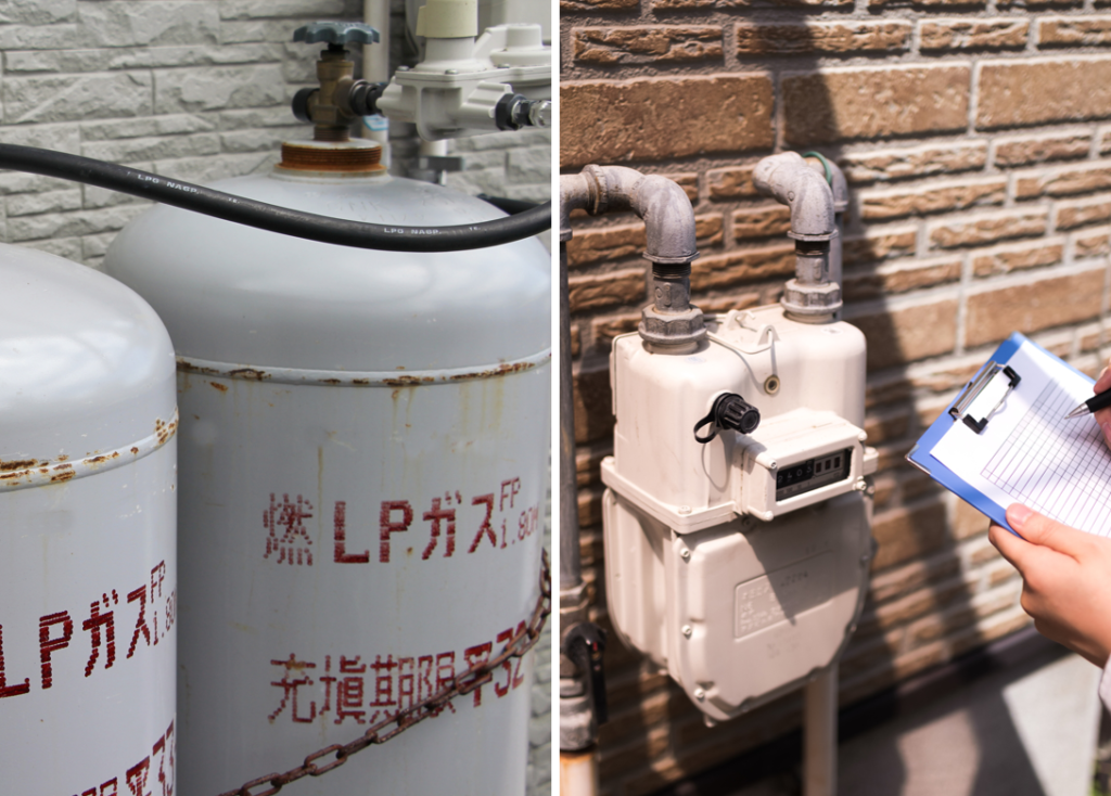 Đối với gas cũng tương tự, bao gồm phí cơ bản và phí tiêu thụ gas. Hiện nay tại Nhật có hai loại gas chính là Gas bình (プロパンガス) và Gas thành phố (都市ガス).